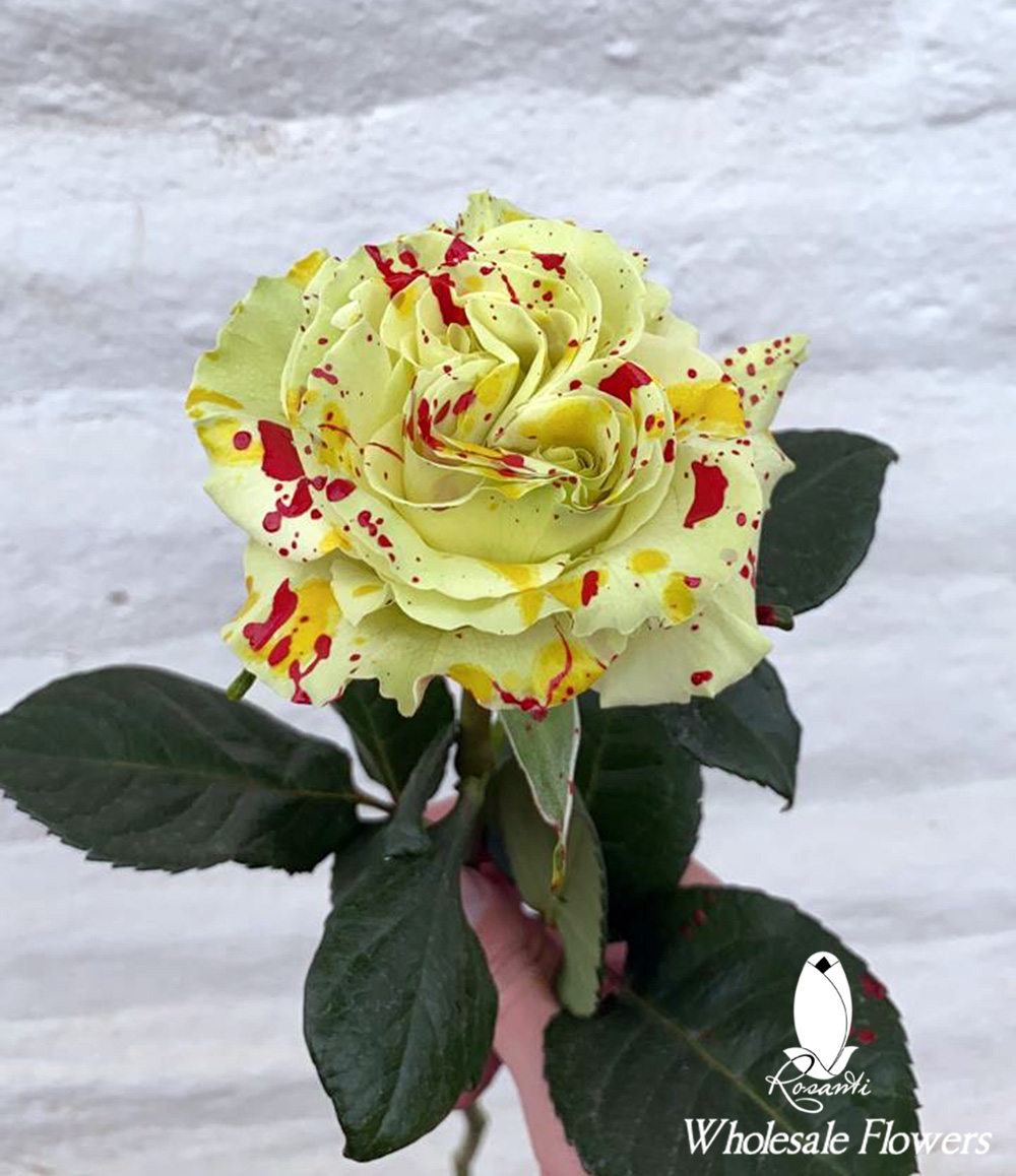 The Ecuadorian rose “Candy Pumpkin Splash”, is a cream rose with orange and brown spots splashed all over the rose. The Candy Pumpkin Splash has been created exclusively to decorate and excel family tables in holidays and other special celebrations. This type of roses are frequently used to beautify flower arrangements and also to complement elegance in any celebration, The Candy Pumpkin Splash is available for Holidays and special events and comes packaged in bunches of 25 roses.